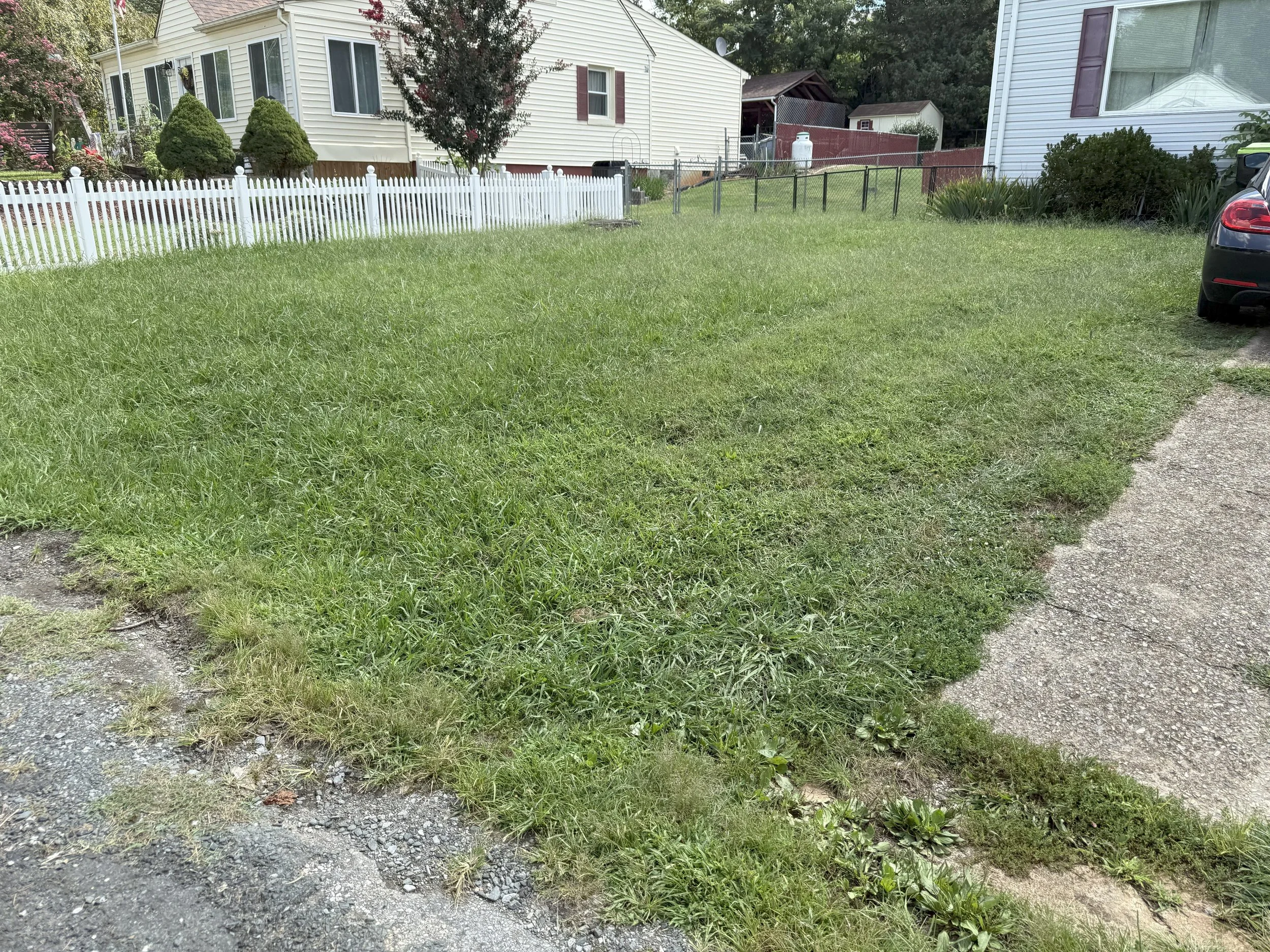 This home in Madison Heights, VA, needed a total landscape restoration. Both the lawn and garden beds were completely overgrown, neglected, and unusable. Our team performed a full restoration: we cleared all weeds and debris, re-defined the garden beds, and performed a recovery mow and edging on the entire lawn to bring it back to a clean, manageable state.